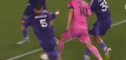 38岁的梅西,是奥兰多城重点盯防的目标,比赛中,梅西多次被踢翻在地: