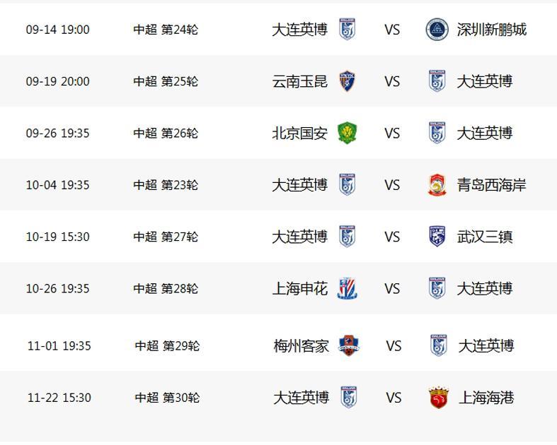 主场迎战新鹏城之前,上述球员都能回归,希望都能“完璧归赵”。战罢深圳新鹏城,英博将迎来两连客,9月19日第25轮客战云南玉昆,9月26日第26轮客战北京国安。进入10月,英博首先迎来两连主,10月4日第23轮补赛,主场迎战青岛西海岸,10月19日第27轮,迎战保级球队武汉三镇。